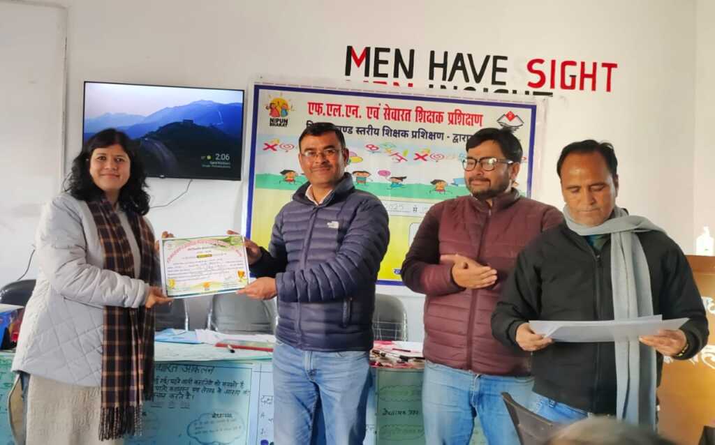 इन 5 दिनों के प्रशिक्षण में शिक्षकों ने बुनियादी साक्षरता और संख्या ज्ञान, परख अभ्यास, मूल्यांकन टूल, विद्यालय सुरक्षा आदि के गुर सीखे। कार्यक्रम समन्वयक अंजू साह और दीपक पाण्डेय ने बताया कि विकासखंड में कुल 3 बैचों में चलने वाले इस प्रशिक्षण से विकासखंड के 100 प्राथमिक विद्यालयों के संस्थाध्यक्ष लाभान्वित होंगे। तीसरा और अंतिम बैच कल से शुरू होगा। वहां नोडल अधिकारी अनिल मठपाल, सन्दर्भदता ललित मोहन आर्य और उमेश पांडे, अजीम प्रेमजी फाउंडेशन से आदित्य, आत्रेयी, लच्छी महर समेत पूरन बिष्ट, अनीता जोशी, मनीष पांडे, दयाकृष्ण जोशी, कमला आरोड़ा, चंद्र नेगी, चेतना बिष्ट, नवीन पाण्डेय, विमल सिंह समेत अनेक संस्थाध्यक्ष उपस्थित रहे।