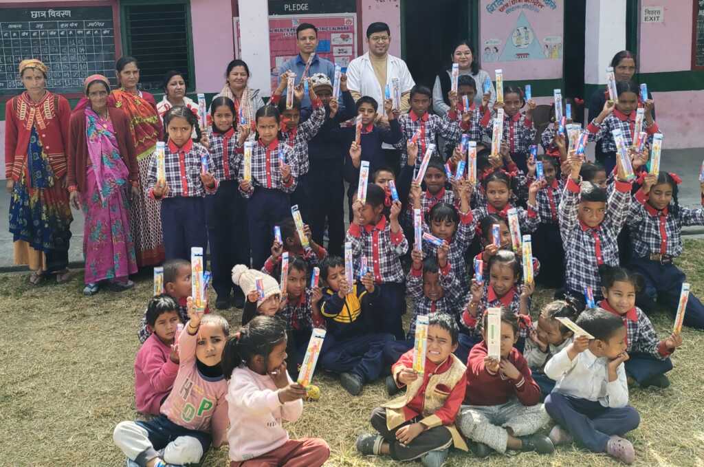 मज़खाली, संकुल द्वारसों स्थित राजकीय आदर्श प्राथमिक विद्यालय मनबजूना में राष्ट्रीय मुख स्वास्थ्य कार्यक्रम के अन्तर्गत जिला अस्पताल अल्मोड़ा की ओर से बच्चों का डेंटल हैल्थ चैकअप कार्यक्रम आयोजित किया गया। जिसमें जिला अस्पताल अल्मोड़ा के डेंटल सर्जन डॉ०ललित सिंह नेगी एवं राष्ट्रीय मुख स्वास्थ्य कार्यक्रम से भगवत मनराल द्वारा 30 बच्चों के दांतों का परीक्षण करते हुए मुख स्वच्छता किट हेतु टूथपेस्ट एवं टूथब्रश वितरित किए गये। इस दौरान डेंटल सर्जन डॉ० ललित सिंह नेगी ने दांतों की साफ सफाई एवं स्वास्थ्य के प्रति सचेत रहने के तरीके बताते हुए बच्चों को जागरूक किया। इस दौरान प्रधानाध्यापिका पूजा साह, शिक्षिका प्रतिभा फर्त्याल, पूजा अग्रवाल, प्रसून अग्रवाल, आंगनबाड़ी कार्यकत्रियों में चम्पा देवी, हेमा देवी, भोजन माता चम्पा राणा, नीता देवी उपस्थित थे।
